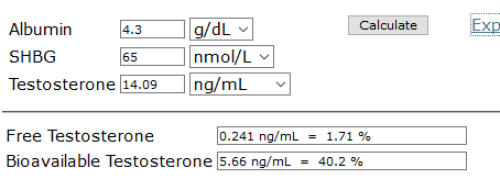 If you had the correct other blood values done ,you can calculate your free testosterone here: