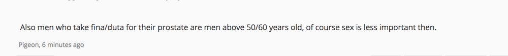 Also men who take fina/duta for their prostate are men above 50/60 years old, of course sex is less important then.
