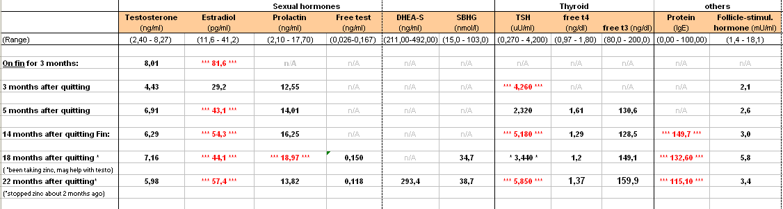there must be some sort of pattern when it comes to who is more likely to get sides. I know 2 guys who take propecia, they are both very hairy, they don't have any sides. Maybe guys who have more DHT are less likely to get sides. Has no one ever taken a closer look at guys who have done blood test before and after finasteride, to see if the numbers can tell us anything about who's more vunerable?