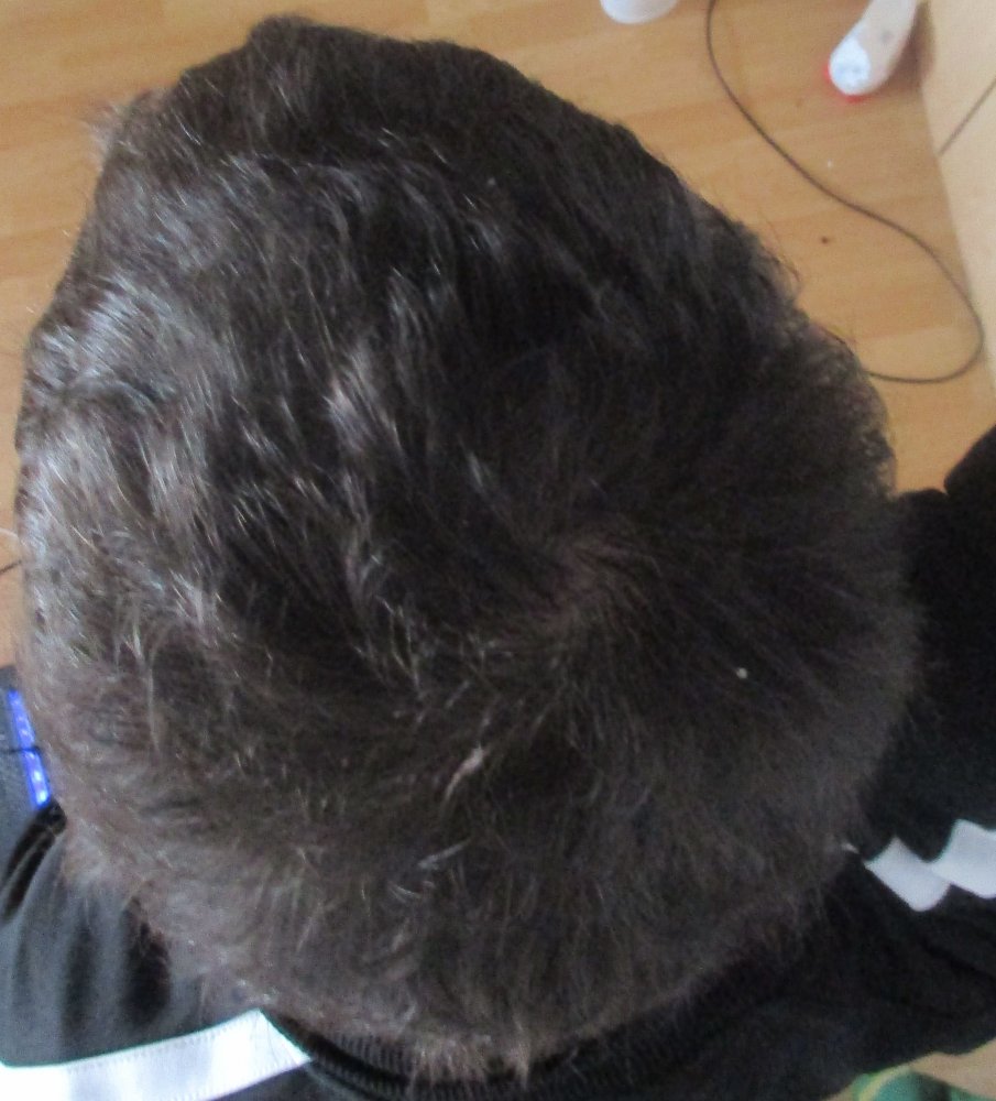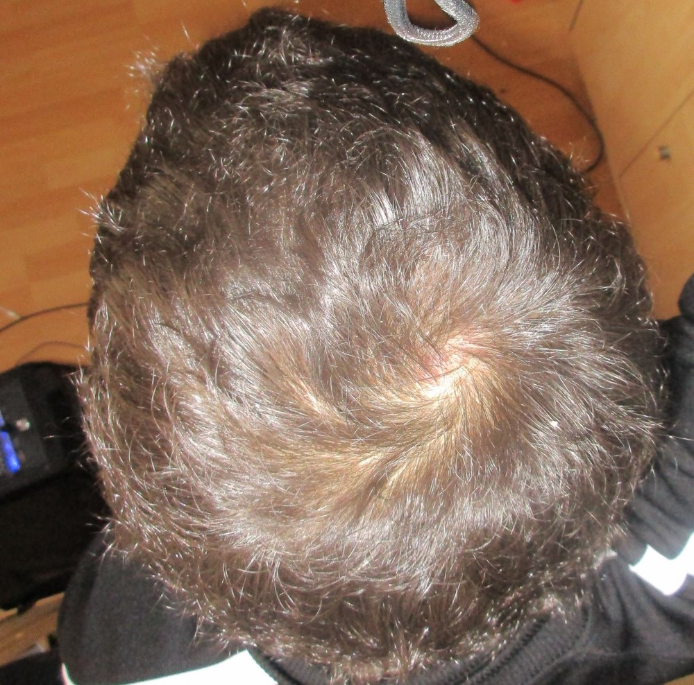 In the last few weeks my hair colour has changed! Hair has become darker again, I no longer have hairs who appear blond or greyish. that´s a good sign, showing that DHT is no longer doing damage to my hair. The DHT itch is now also gone completly. Apart from that my hair looks like sh*t, the density is ridiculous and the temples destroyed.....Hat prisoner 4 life!