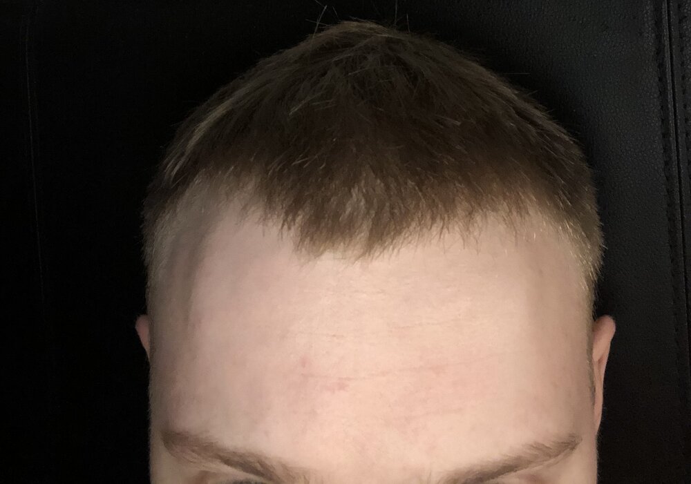 My side temples( NOT my hairline) are very dull and almost straight looking and make my forehead look larger so I would likely want to re shape my temple hair line via hair transplant to fit in with my hair piece and just look better without the hairpiece anyway. I believe I’ve always had a slightly straight temple hairline but I would believe it’s probably receded a bit with age.