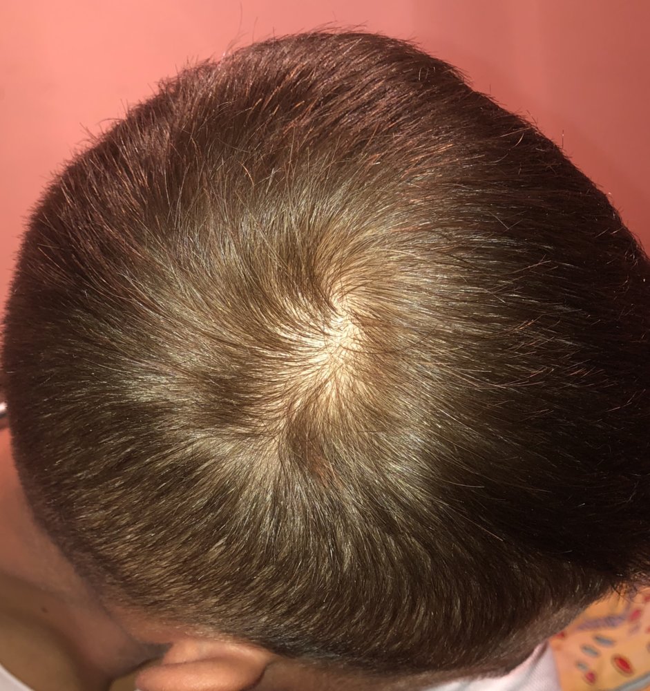 -I have androgenetic alopecia from what I have been told (mom also started balding after she gave birth and now she has few hair at the top but did not lose it completely,and dad only went bald in his late 30’s but by choice)