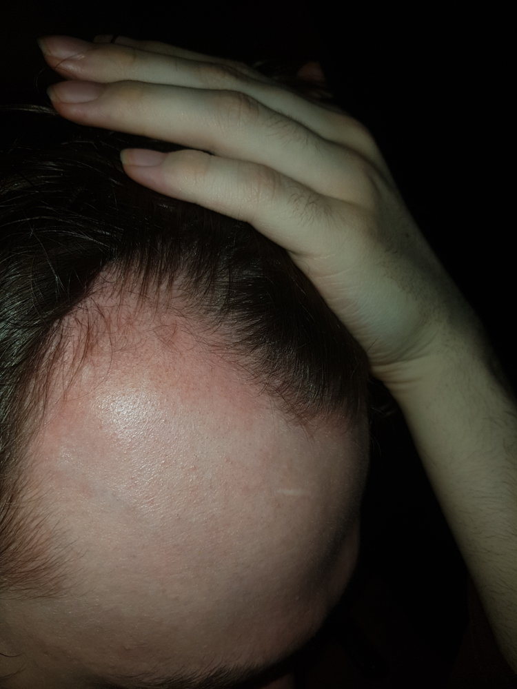 Do you think your skull has changed shape at all? Any thoughts on the expansion theory?Part way into my regime (August 11th) versus now, there is a decent improvement to my hairline, I literally had to take like 50 pictures to try and get the angle right and it's still off but I hope you can see the progress. It's nothing major but my hairline has moved about 1-2cm into the slick bald now. You can also see some flaking skin which is from the microneedling, it just looks like a sunburn, the only reason it's visible is that I haven't had a shower in like 3-4 days, normally it just washes off after a few showers and you can't even see it. I also added an extra two images from the last couple of days