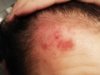 I've already been asked several times at my university what happened to my temple. I just say "i dont know man i was drunk last saturday and woke up with this". It works lol.