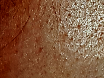 Super hard to see but here is one of the vellus hairs that turned terminal, you can see it is black at the roots and goes off into a vellus hair. I think it's interesting since most people typically believe the hair needs to shed before it goes terminal but it appears it just turns terminal at the roots. I first noticed this when I started growing terminal hairs on my upper cheek after microneedling for acne scars. I got some pictures of those hairs too.
