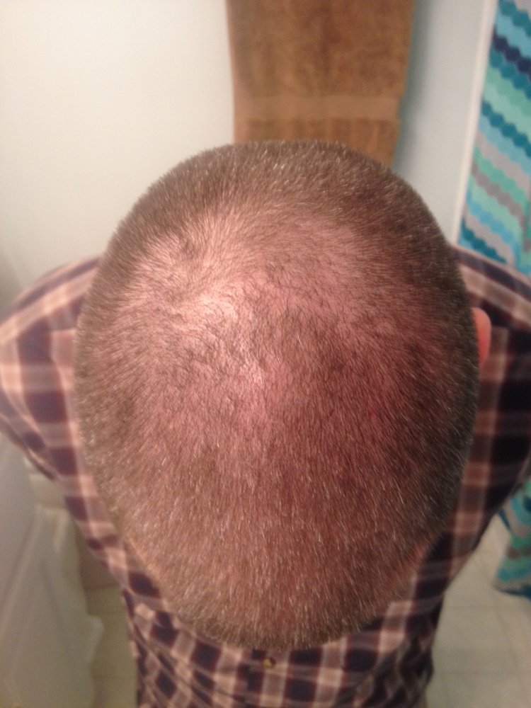 No I get that, you're right. Here's another shot I had a friend take. It looks better than I thought it would. This is buzzed down to just above a 1 under bathroom light. No flash though and I'm not facing the light. At first I thought it looked ok but to me I see an enormous amount of scalp that would need to be covered.
