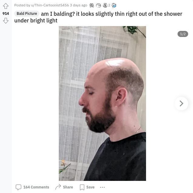I wasn't saying he's bad looking. Even though his hairloss is worse than mine, I think he looks better than I do. Not that I think I'm bad looking though. I think I'm pretty handsome.