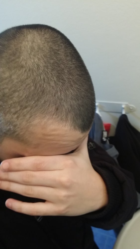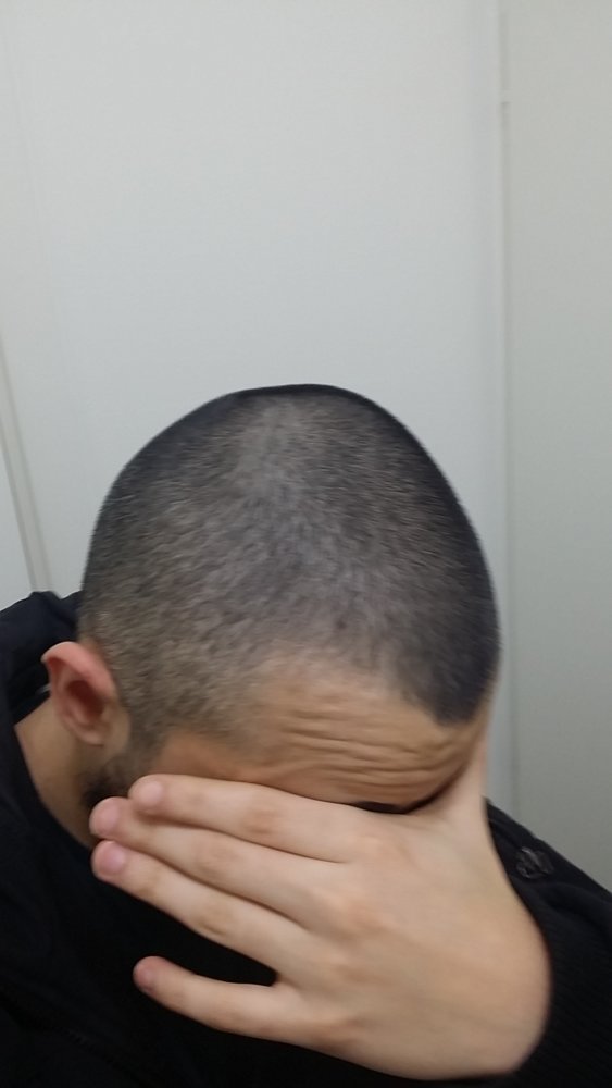 So I don't know if it is male pattern baldness, and if it is its a weird one. But when My hair is quite short I can see 3-4 lighter straps on my right corner. For some reason the camera doesn't pick it up too well, even tho I stand under heavy lightning. But i will post a picture in my next post, the one that picks it up the best and you can give me your opinions.