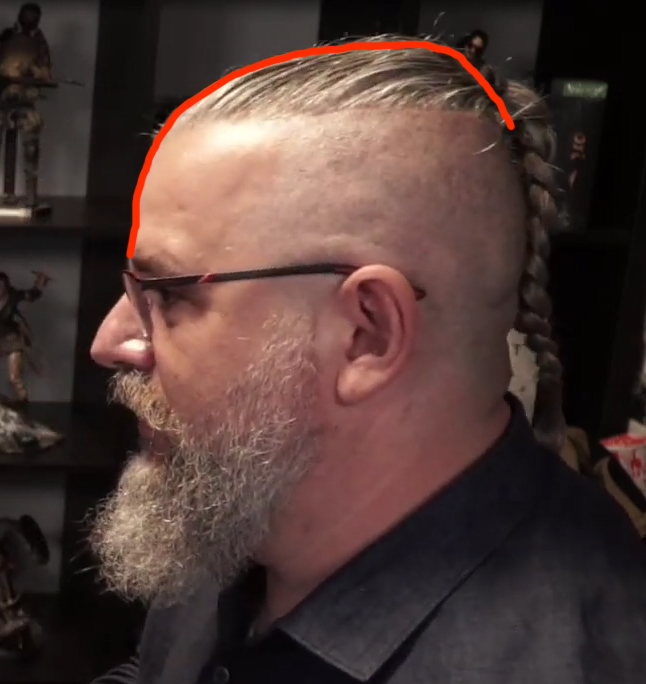 I was just watching a stream and noticed how big this guys galea is. You can still see how big his galea is even in the areas where there is hair covering it.