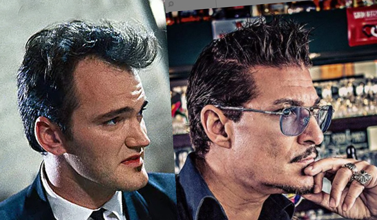 bringing his hairline down would make his galea look even bigger, if they both razor shaved their heads, tarantino's head from the eyebrows to the apex of his scalp would look bigger.