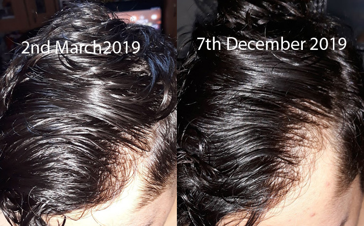 During the next 2 months, my hair got worse. By June, I was very anxious and barely went outside, I even avoided getting a haircut, and used to wear a cap most of the times, due to my low density in the front. It seems that the front and the left temple got worse.
