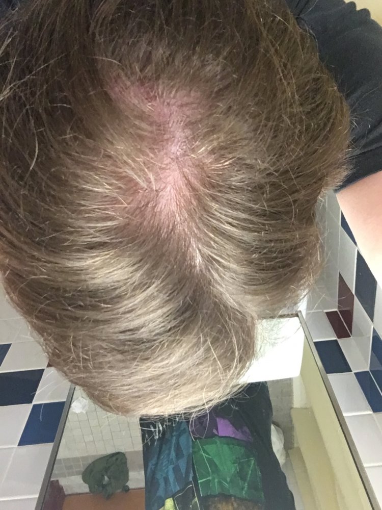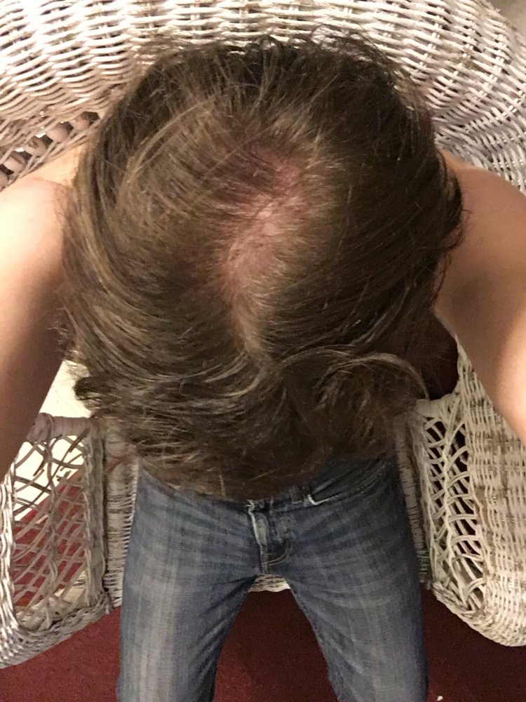 So, my hair is usually rather thick, and for several years I kept it pretty short. I never noticed anything odd with my hair line or my crown. Recently, I decided I was bored with my short hair and decided to grow it out. It's been 6 months since I had a hair cut and MAN am I noticing something that looks like balding. Other people are too. But one friend who noticed said it only looks bald because I'm growing my hair out and the follicles are being pulled or something.