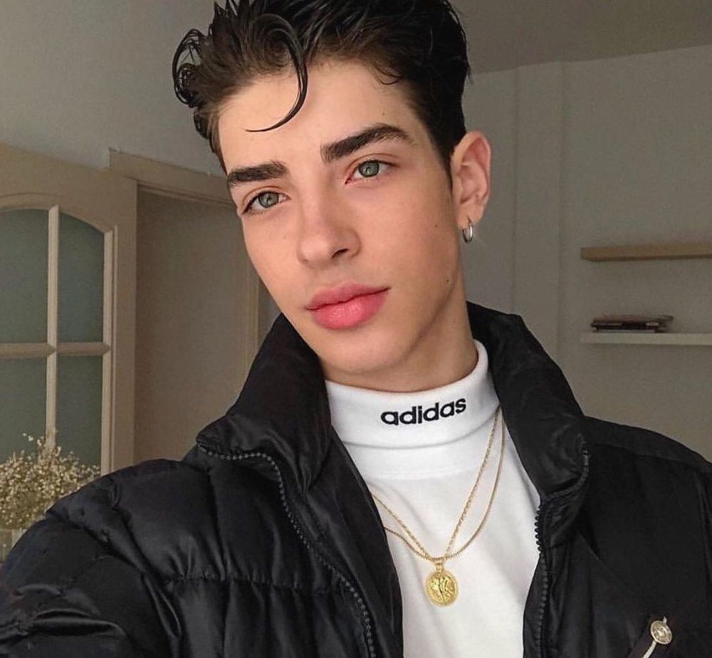 Manu Rios is a young male model, of course he looks good. On the pic you posted he looks odd, must have been when he was younger. He does have some facial hair growing now at least: