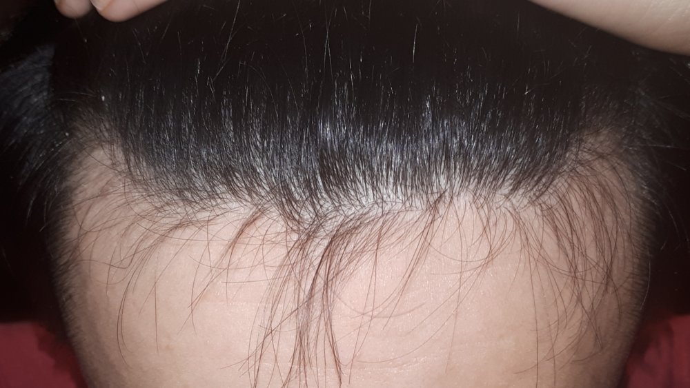 Where's the thinning except a little bit at temples?NW1 straight hairline to 1.5 diffusing all over is a big deal for such a short period of time.