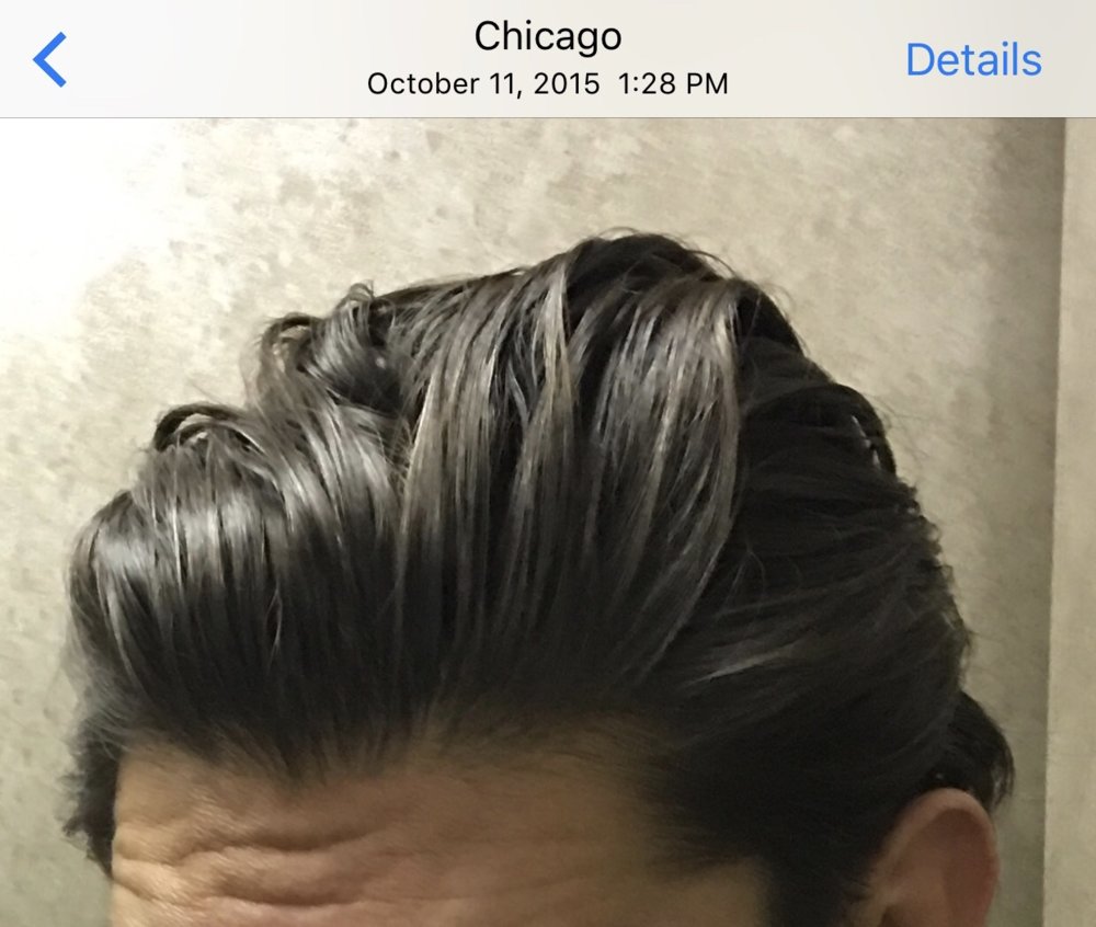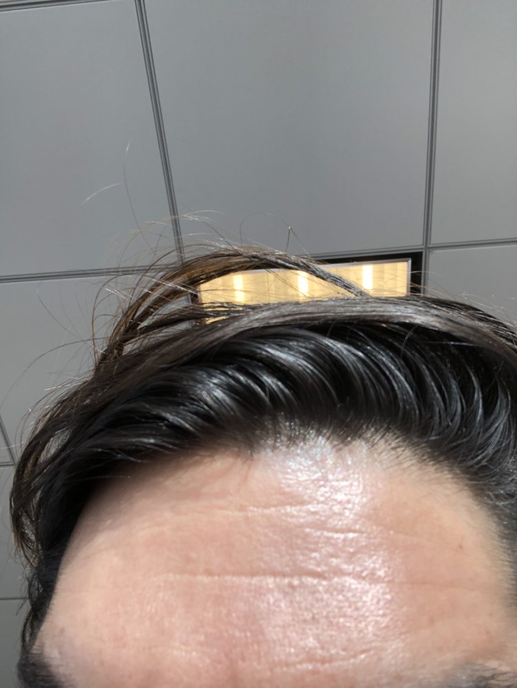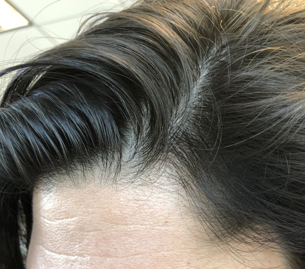Please see a few attached. Hard to see because overall density too the biggest hit, diffuse all over. The front has recently thinned and I can see into my scalp and the temples are open.I cannot give any advice on RU as I have never used it. PM me photos showing your loss as I don't remember seeing any loss in any of your photos. You have better hair than I ever had.