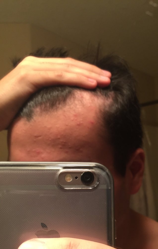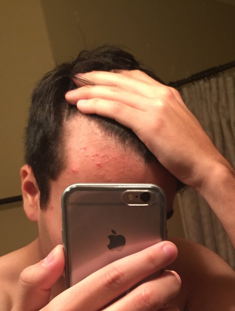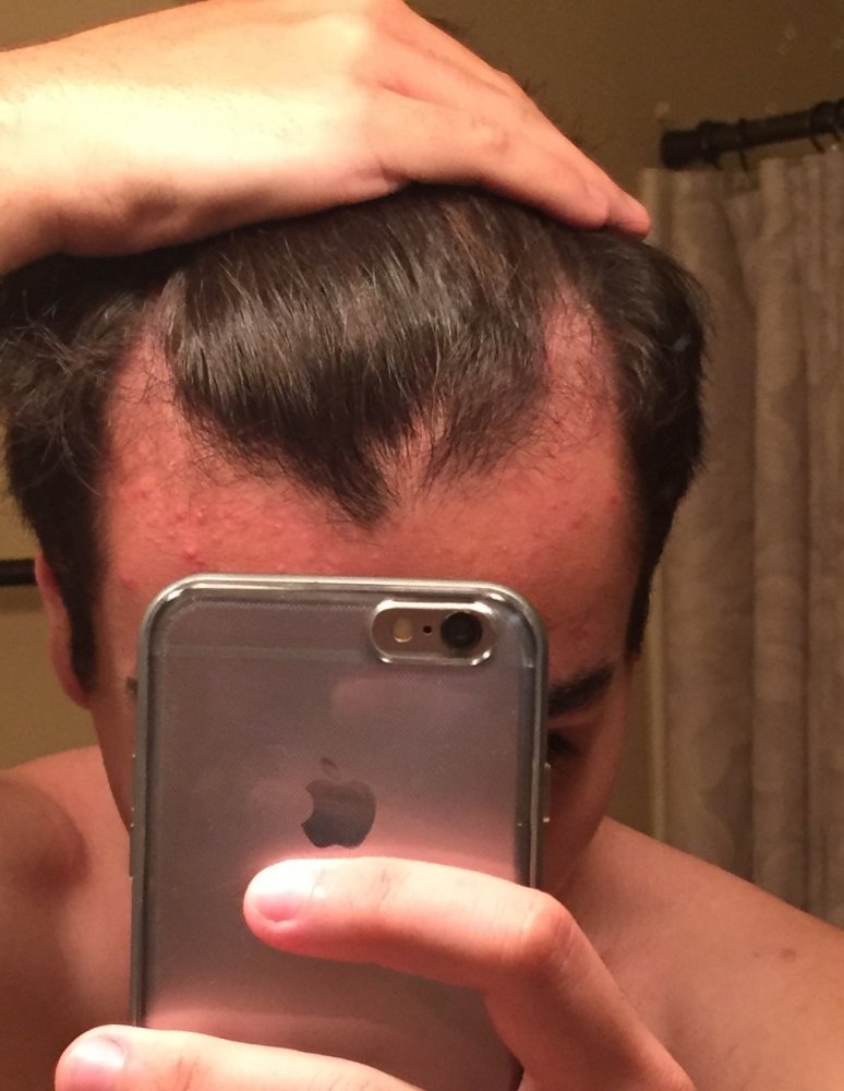 Not sure if you're trolling or not but that's a heavily receded hairline. Not going to sugar coat anything.
