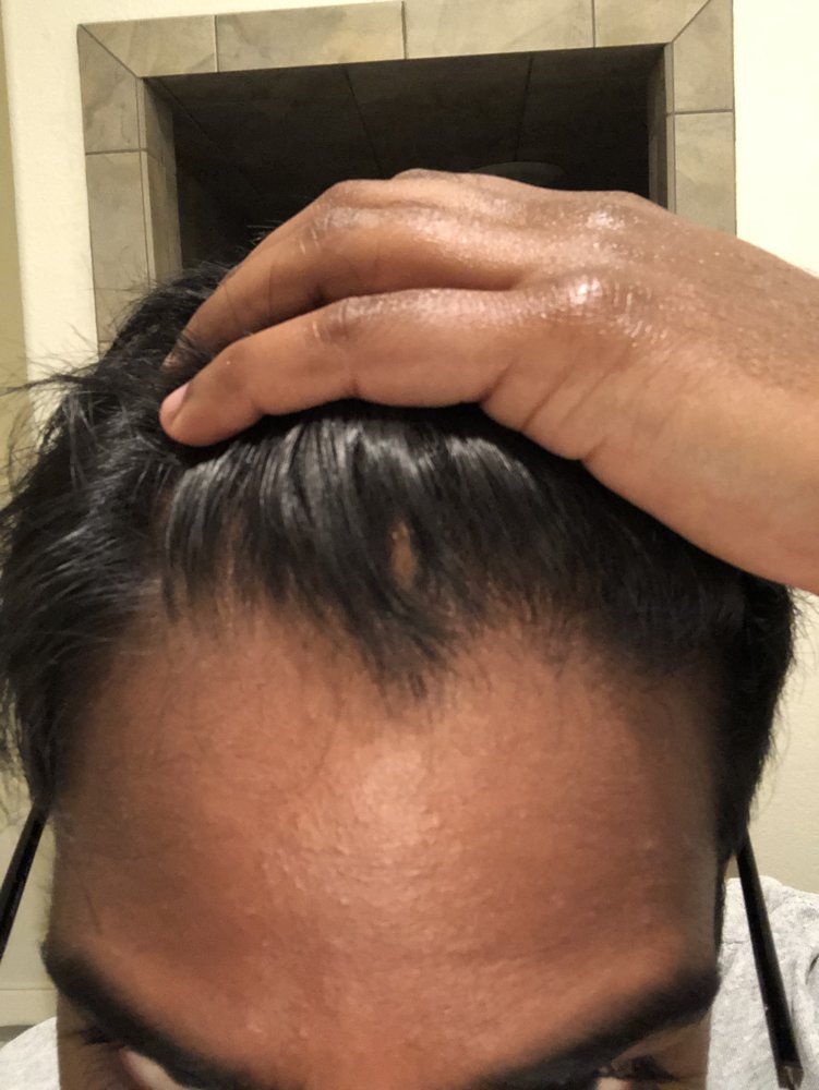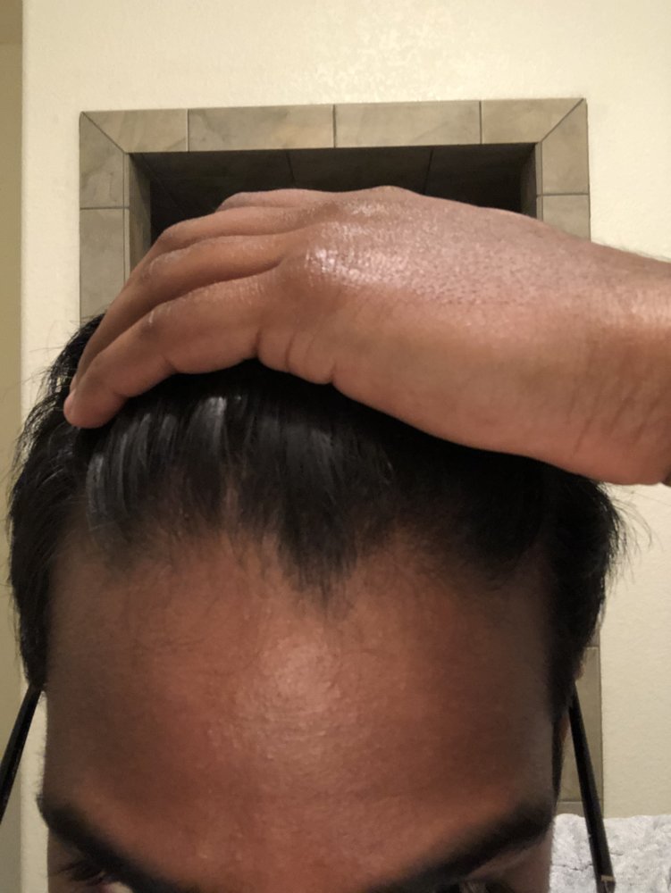 Or maybe it's my eyes playing tricks on me because it's not symetrical and you have a widows peak.