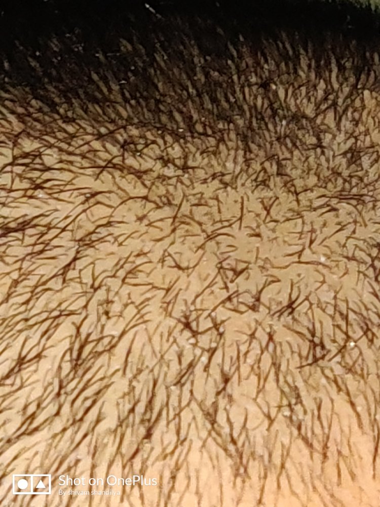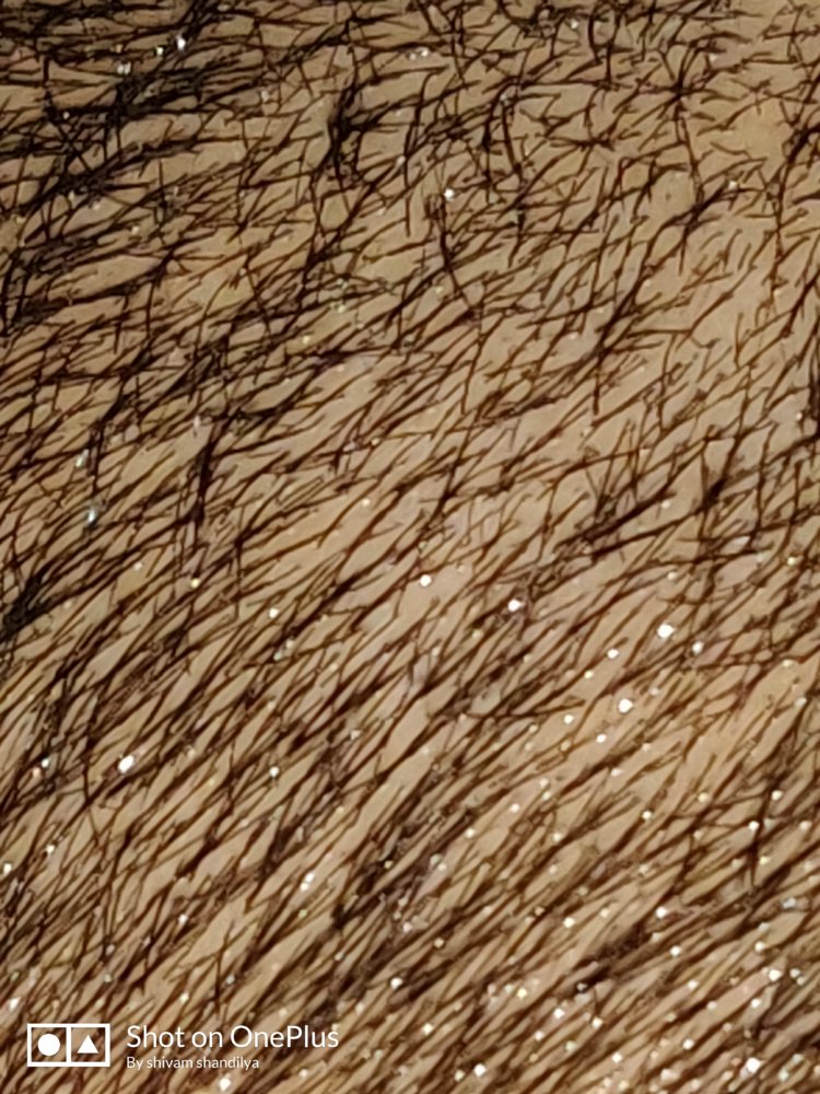 I had an episode of high sherring recently after which I shaved my head. Now I feel like my temples have less density of hair than my mid and back area. Also there are some small hairs in my temple region that aren't growing. Is this minituarisation? The first pic attached is of my mid area and second is of left temple. Also I had a very Crash low calorie diet by which I lost 10 kgs in a month. Could this be temperory?