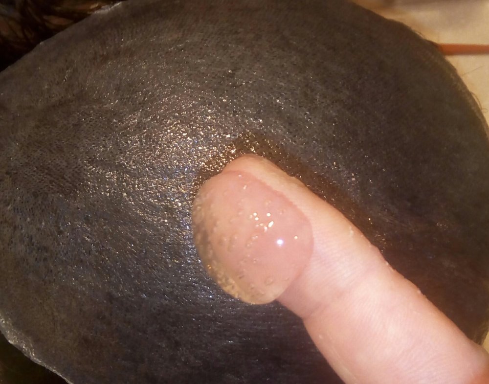 So far, I've been very lucky that my body chemistry works great on all kind of adhesives without using scalp protector. . If l want to wear the system for a more than 3 days. I will use Ghostbond or Esha instead. Here's few pics from the hotel bathroom this morning. I started at 10am and walked out the room at 10:10am. At the end of the day, it only take 5 second to peel off the system and less than a minute to clean up the base. It allows my scalp to rest for 6-8 hrs every night (or every other 2 night). I don't need to worry about bacteria overgrowth.
