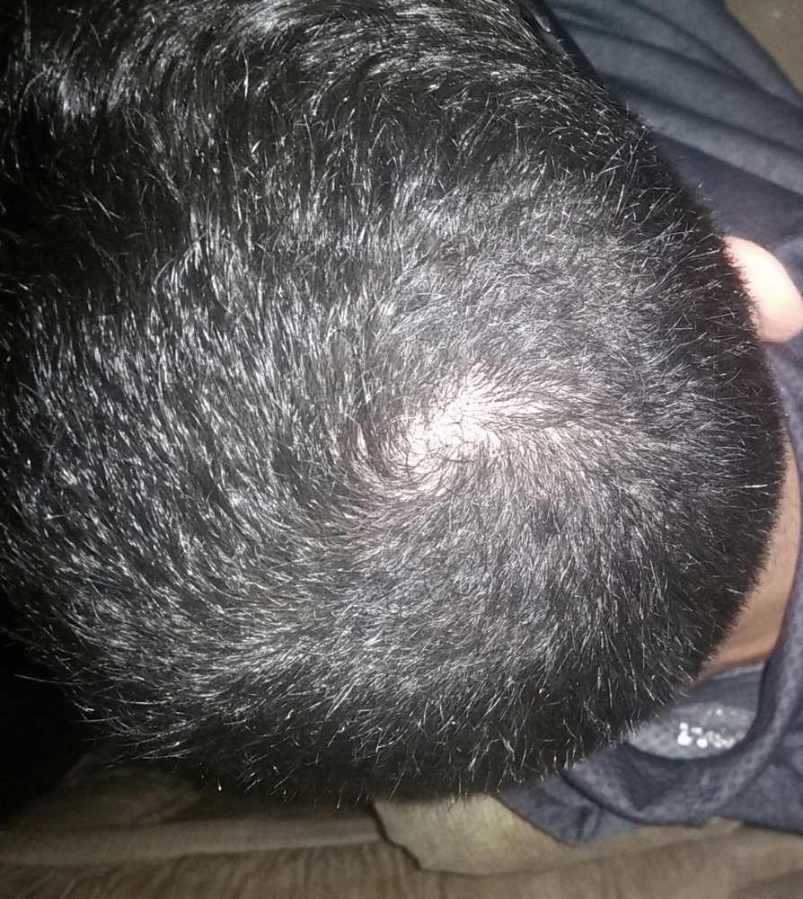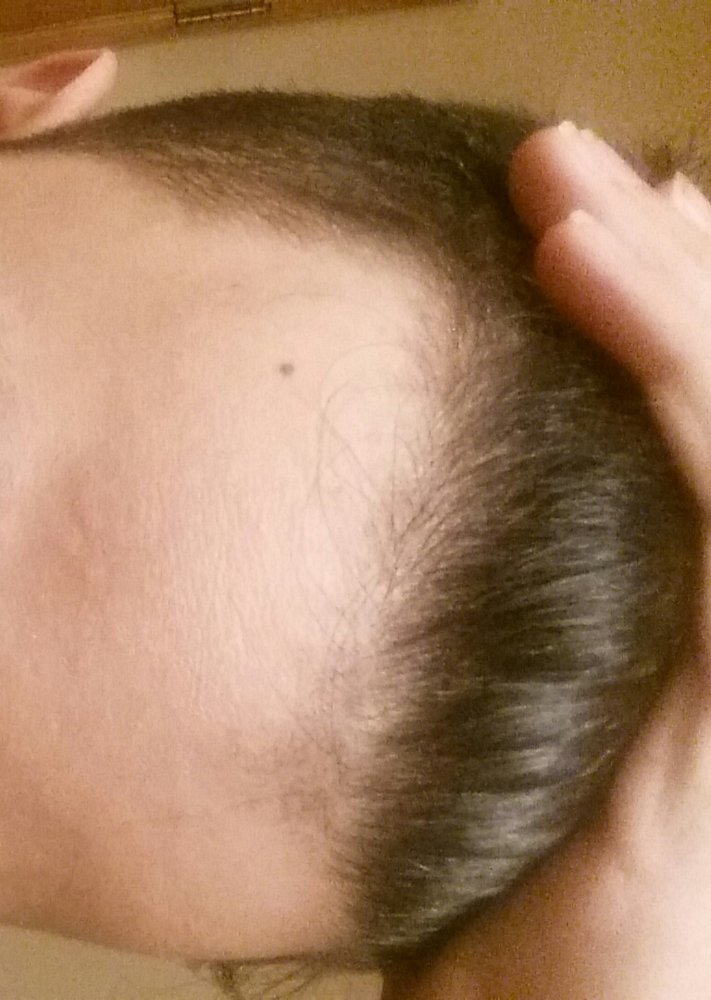 Can you take pics from each side of your head with hair pulled back to expose the hairline? That will give us a better indication