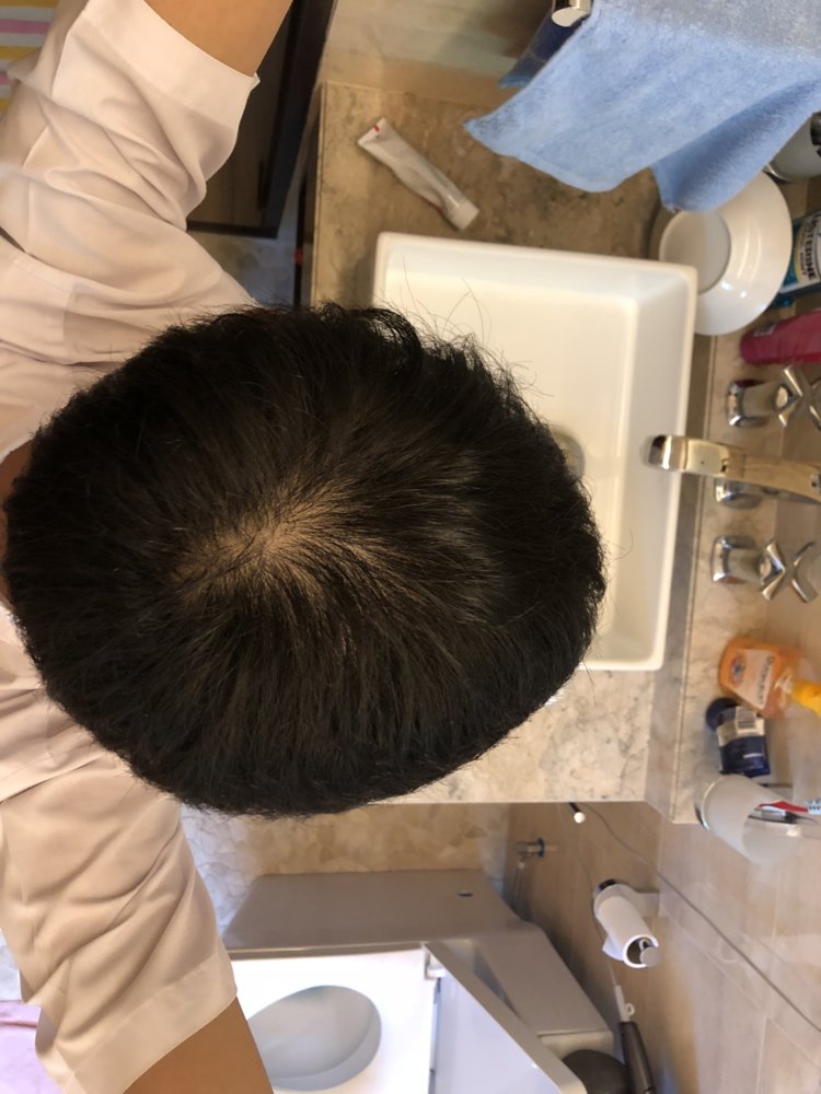 Run.That looks like the very early beginnings of male pattern baldness