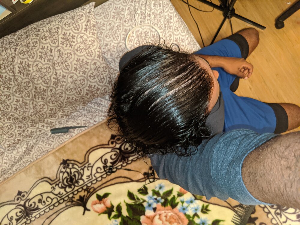 So I've been worried about balding for a while now, and I've decided to grow it out incase I start losing it very early. The pic below is after a shower combed back and under my camera flash/room light. The second pic is my hair parted down the middle with camera flash and bathroom light. I am 19 years old and my hair is about 6-7 inches long. Any thoughts are appreciated.