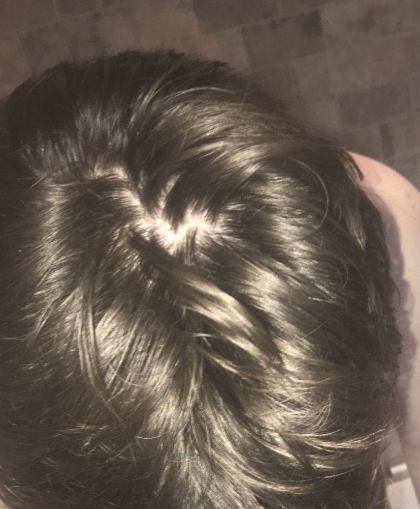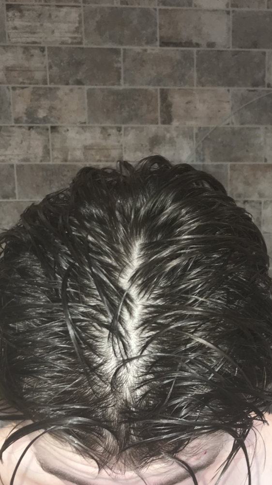 Hi all, just returned from the gym and was sweating like a mofo, and just decided to take a picture above my head. To me, it seems it looks really thin? It’s very wet as you can see, so I can’t really determine what it is.