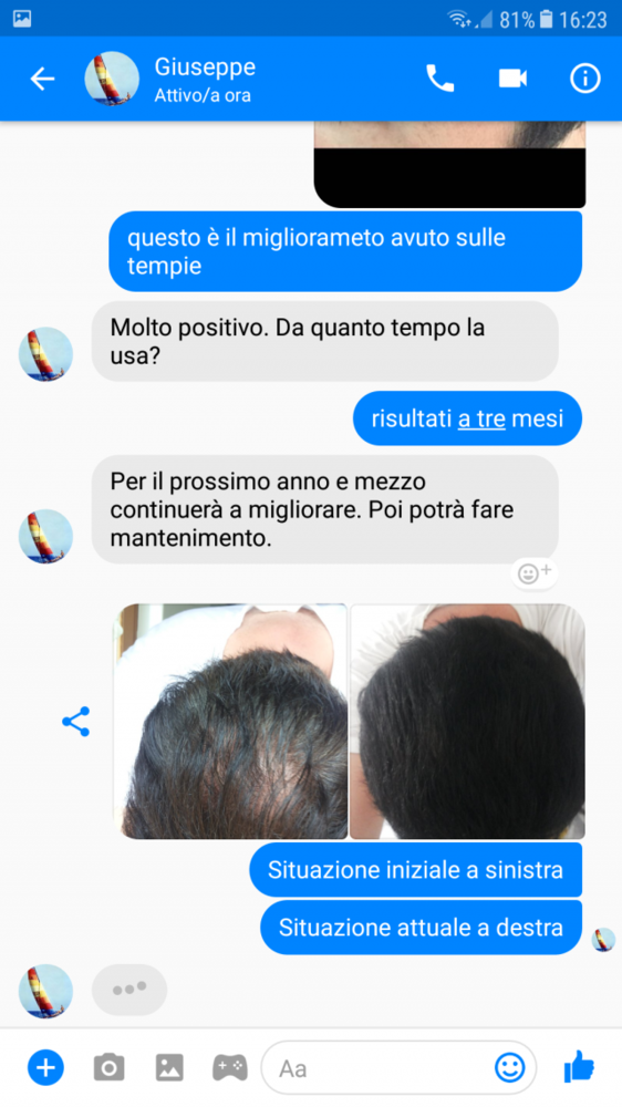 "le foto le ho girate personalmente a brotzu per ringraziarlo dei miglioramenti avuti grazie alla sua lozione dopo il trattamento ricevuto al convegno era il minimo altro che i prodotti tutto fuffa che si vendono in farmacia e online.posso giravi anche gli screen della nosta conversazione su facebook se volete"