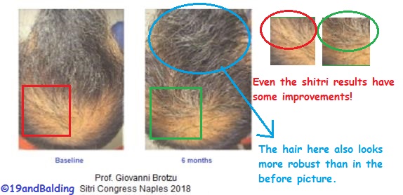 A better indication of what it could do for us are the home made results, and I know I sound like a broken record but they are all great and we got anecdotes from users that are in our group that they experienced results within the short time they used it. For some members it worked wonders together with minoxidil, even when minoxidil did nothing for them on its own (à la Crazyhorse/Cavallopazzo) and temple guy.