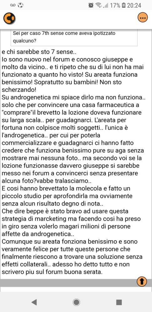 I'm new on this forum and I got to know Giuseppe really well... and I repeat, it (the lotion) never worked on him as far as I know! On areata it works really well! Especially on children! I'm not kidding!