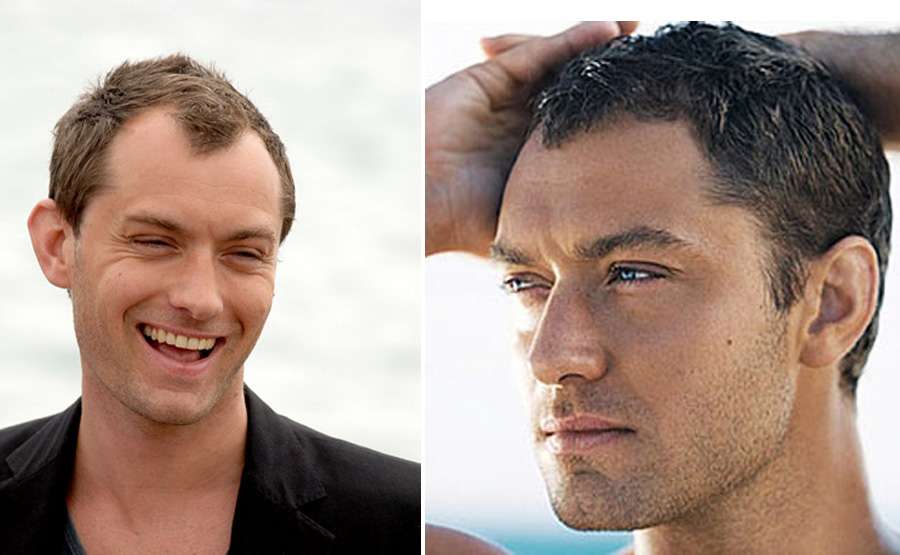 The thing about hair transplants is that the outcome really depends not so much on the number of hairs available for harvest, but what has to be done with them. From the looks of Jude five years ago, I don't think he'd be a good candidate, because even a mega session isn't going to change his appearance. As for meds, almost no one grows hair on them, they maintain, so I'd bet he's using a hair piece.