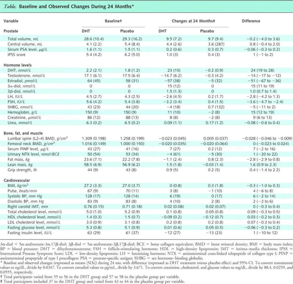 That paper there gave old men 70 mg DHT/day. The results were that the DHT-treated group had a 10-fold increase in serum DHT levels, well above the normal range of circulating DHT.