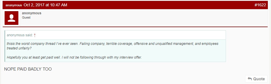 How in the world did I not take into account the fact that all of those posters were obviously native English speakers, referred to coworkers with American names and, perhaps most surprisingly, explicitly mention that "the entire company US closing down in 30 Days" in a comment that I coincidentally screencapped and posted earlier.