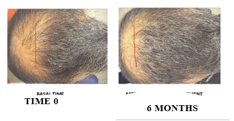 Well, this is a great results to be honest. Noticable regrowth only in 6 months time. And a patient is old person who has lost his hair years ago (arguably). Who knows, maybe they picked up this example because, well, this is actually quite impressive.