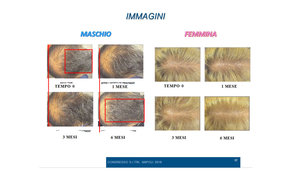 From the patent: «On day 90: in group 1 all the patients report total disappearance of hair reduction areas that have been replaced by robust and shiny hair.»