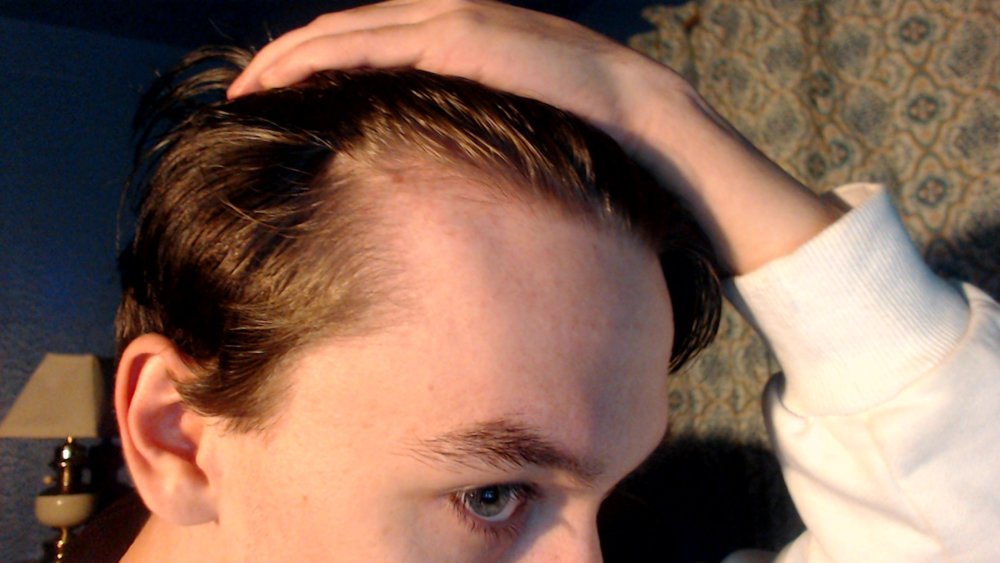 You have great hair but your hairline has receded a bit. You're somewhere in between Norwood 1.5 - Norwood 2