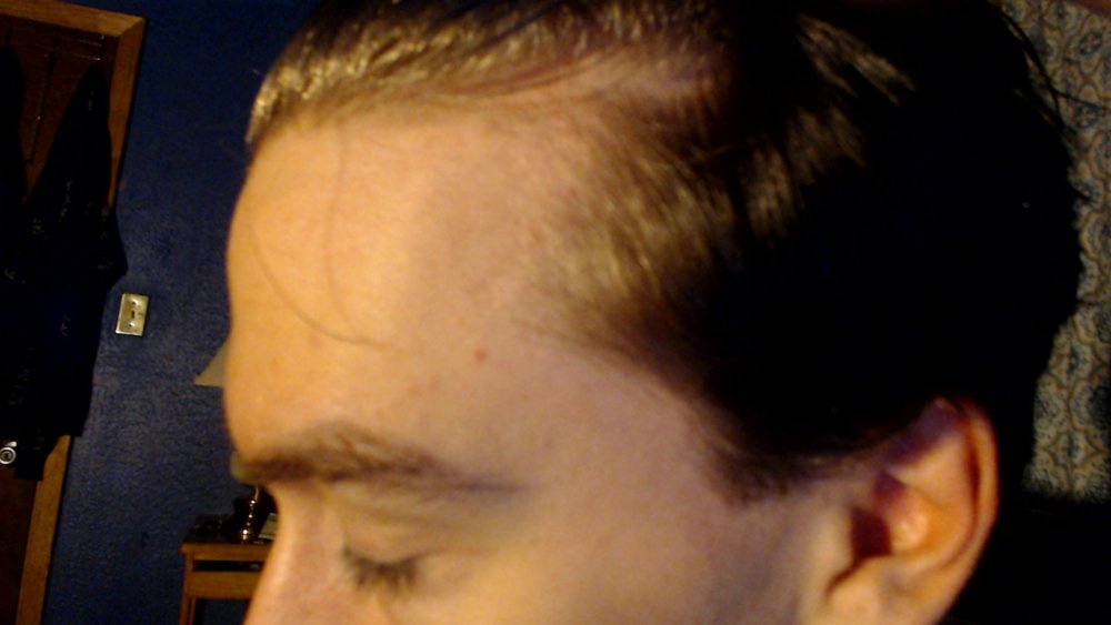 my temples have always been slanted and never been a perfect 90 degree angle. kids used to make fun of me in school for having such a big forehead LOL. but idk if my temples have always been that deep thats the main reason why im worried.