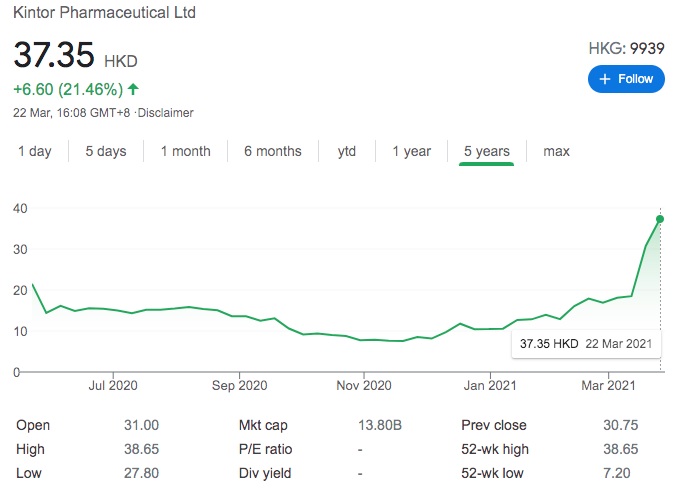 damn... as one that trade the stock market, it's sad that I encounter this thread only now... this stock kept surging and more than double itself since then.Apologies to everyone hoping for real news regarding Kintor but the stock chart is just going crazy. The main driver behind it is probably Proxalutamide a nonsteroidal antiandrogen but still good news in my opinion because they seem to go through trials super fast and they are currently in phase II for Pyrilutamide.