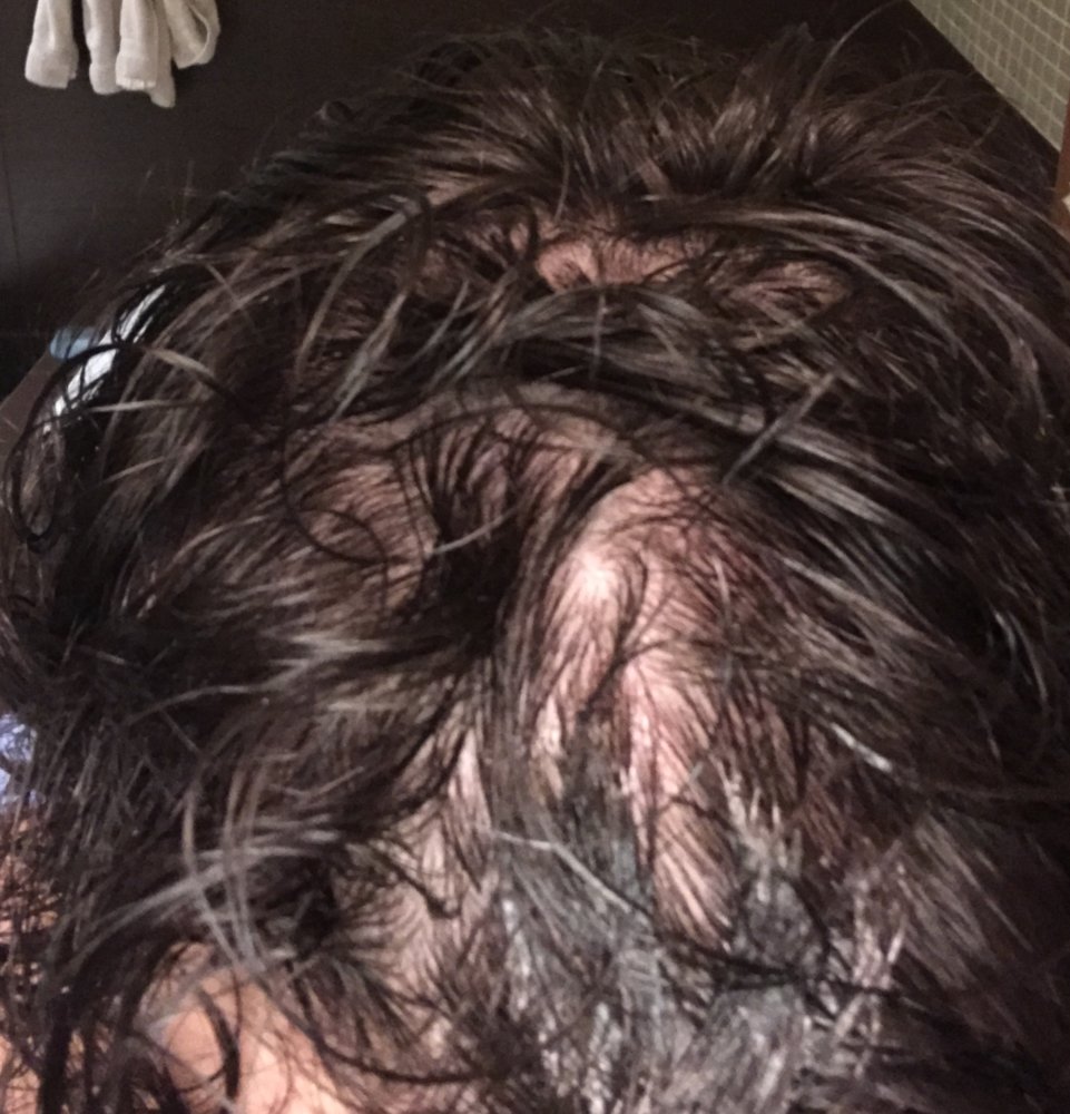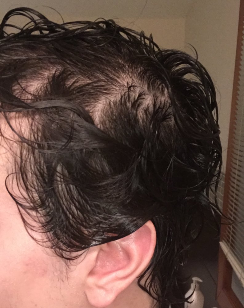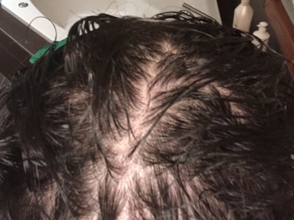 It's also worth noting that all those spots of visible scalp weren't visible only 3 weeks ago, and I've experienced massive loss of hair in the last month (not miniaturized haired either, loss of full length thick hairs).