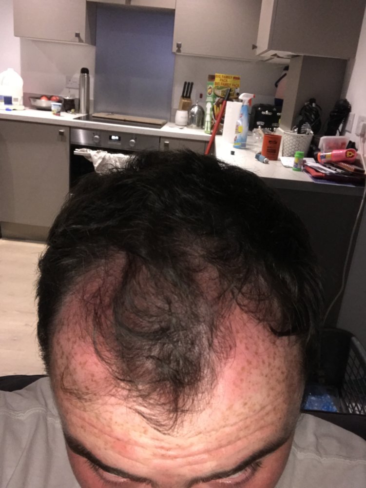 Looks like a similar pattern to mine , how many grafts do you guys thing I will need ? See photo . He redness is due to sunburn. Was nice weather in England today for a change.