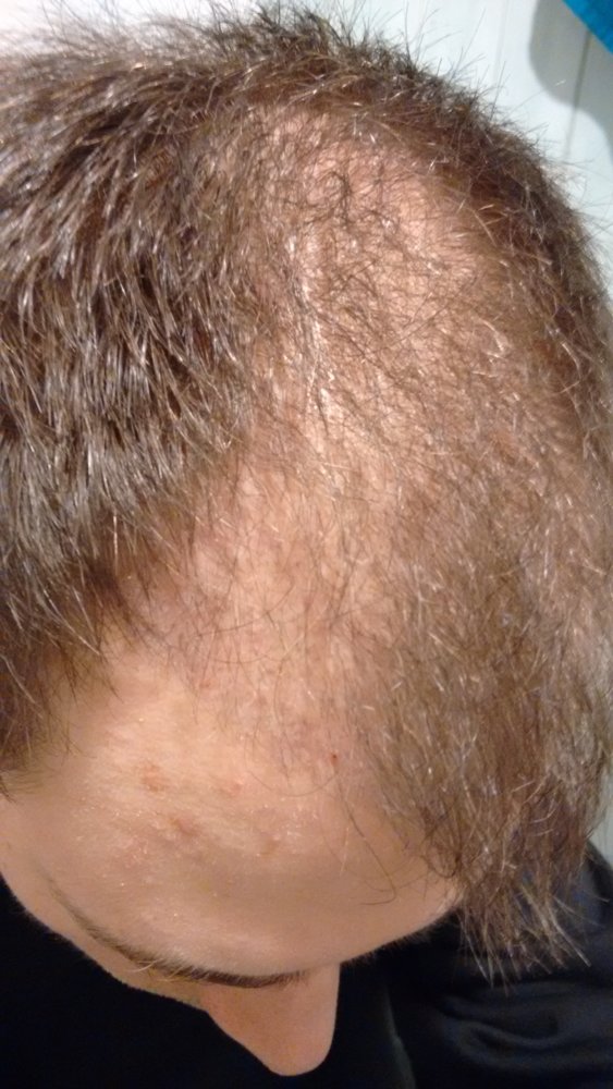 These were taken on day 15 in the small time window after the scabs had all gone, but before major shedding took hold, although I estimate 100-200 hairs fell out with the scabs, especially around/near the crown (I couldn't help myself but to pick at some of the scabs day 11+ ._. ).