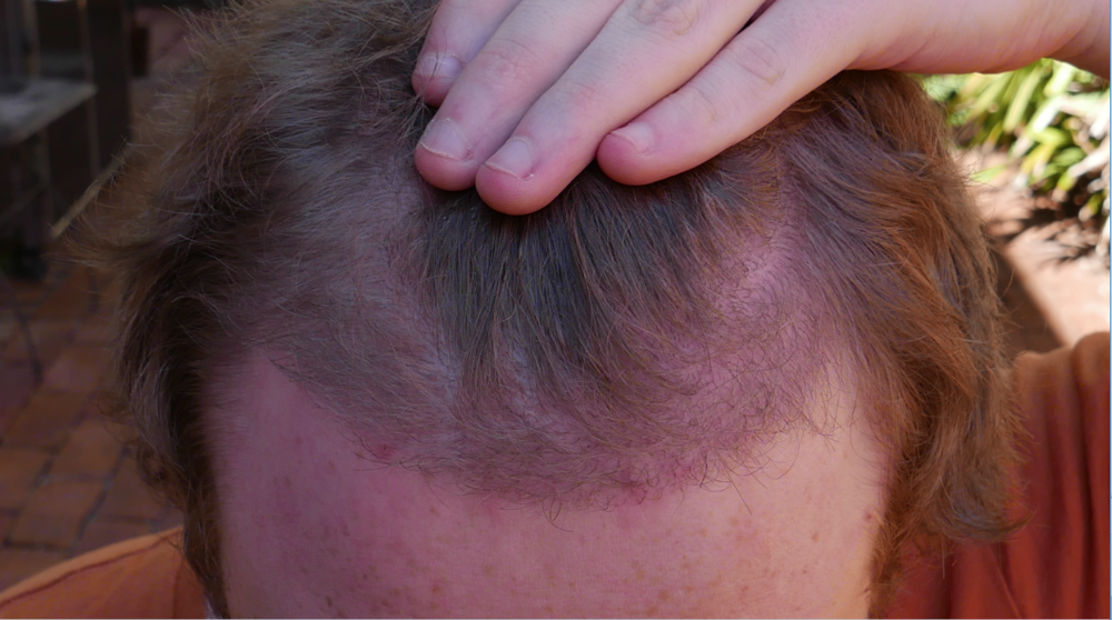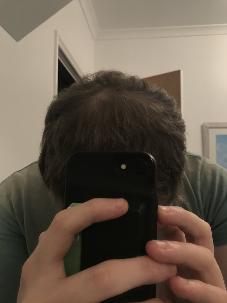 Beginning to get somewhere, but there are a few problem spots at the front of the hairline with minimal growth. Hoping I can get similar progress of the past two weeks up to 6 months and it should be looking pretty good. At this rate I'm probably a month off a decent cosmetic improvement and I'll get my first haircut at the five month mark which should help balance things out with the native hair.