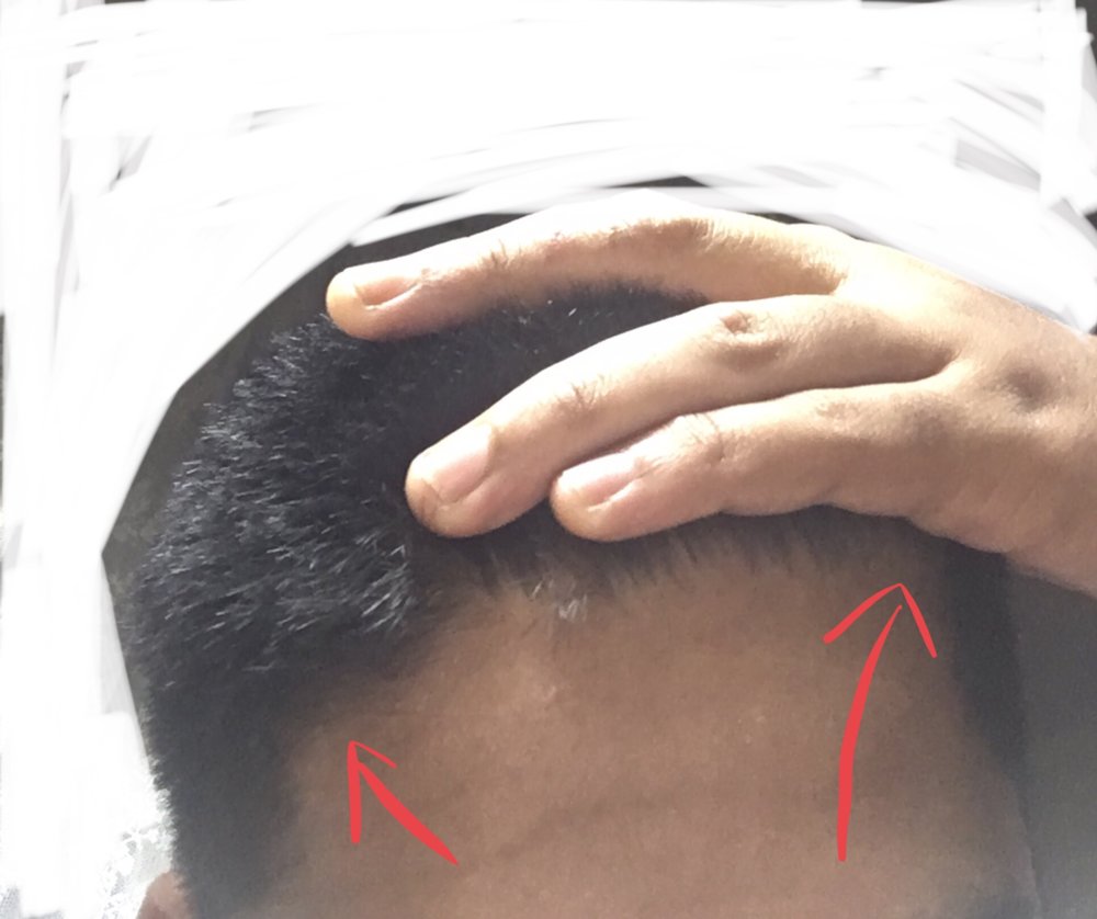 Left Temple Has Finer Hair, Little Higher Than Right Hairline