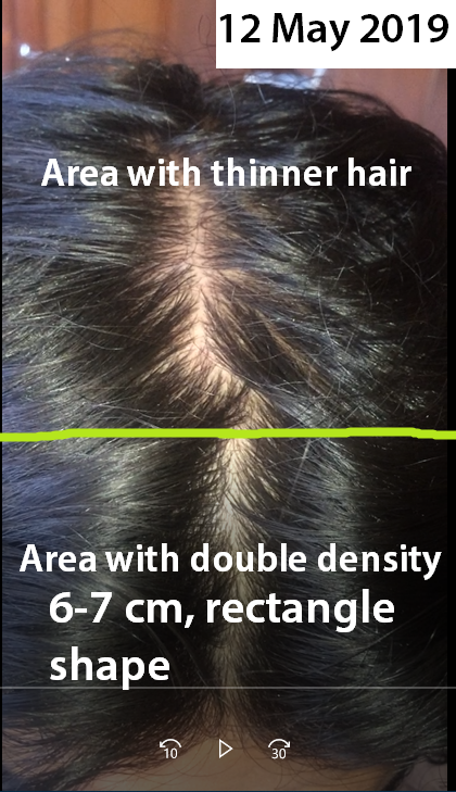 2) can hair be naturally thinner at mid scalp and vertex than front and back? The back and the front are at least twice as thick as the top.