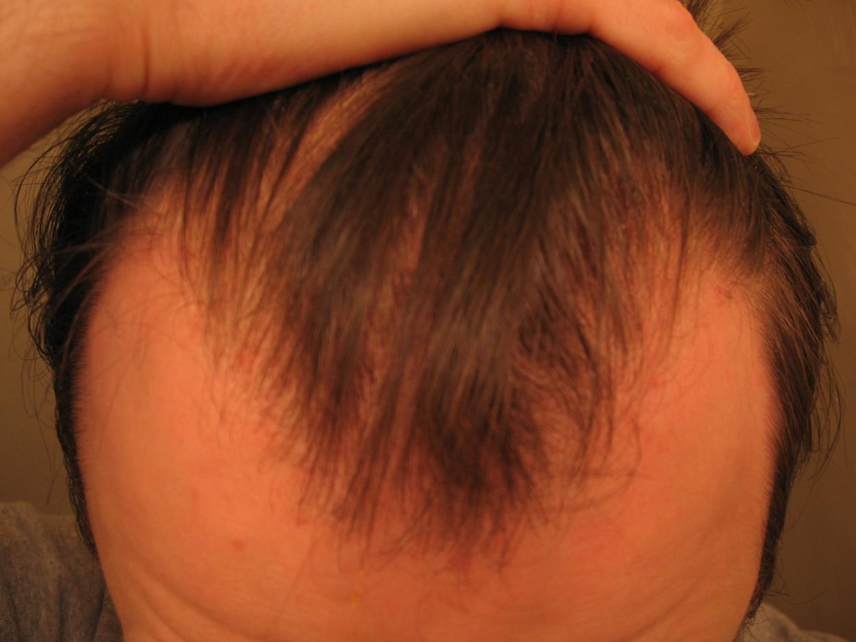 Owing either to that or just genetics, the bald patch didn't seem to get any worse over time. But over the past six months--and really dramatically over the past two--I've had noticeable thinning through the top of my head and the front. It feels like 50% of the hairs have disappeared. I can see bare patches on my scalp after showering and the top just seems substantially thinner than it's ever been. Unfortunately, due to a family illness, I don't see my stress triggers going away anytime soon, and I'm not even sure that didn't just jump-start a hereditary problem I was due to have anyway.