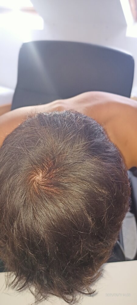 So before then of course I felt there was no substantial loss which made it seem like I'm going back on the shock loss thing. Also, I'm sure you recall, everyone else in this thread said your hair looked the same as your previous pictures. But now based on the first picture you sent today, I can say it does look like you have experienced hairloss in various places in your crown region. So we cannot be blamed due to the quality of the pictures you provided us with.