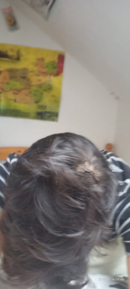 Anyway, I find it creepy that you've saved my photos and uploaded them, I'd like to request that you take them down. I've got three photos from this week and one photo from the second of January, and although you can see some scalp on the second of January, it's pretty obvious that my hair as gotten much worse. There's literally no hair where there used to be, and that's not possible from "ruffled up hair"