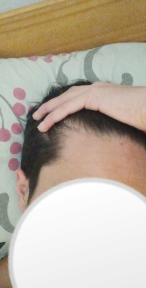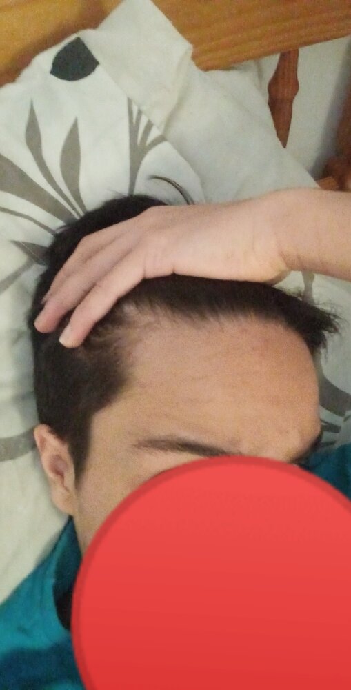 When I first noticed irritation in my temples about 6 months ago, I did take a pretty useless picture. But I think it's clear that despite the difference in length, my hair is quite a lot thinner now than then. It is also clear that on my left temple, an M shape is beginning to develop