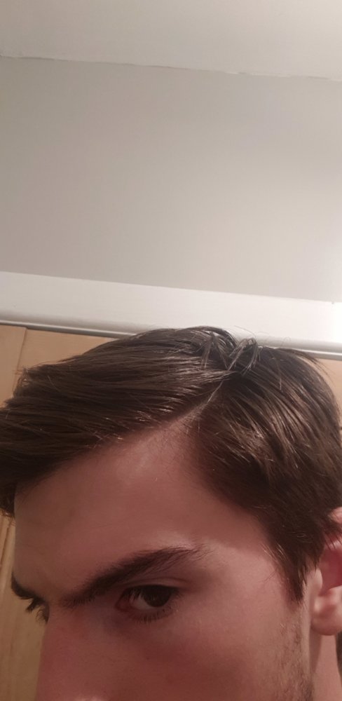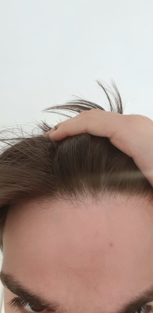 I'm 22 and have become aware of some (?) hairline recession, particularly at the temples. I also feel that my hair has become less dense; however, I am not 100% sure as I experience very little shedding.
