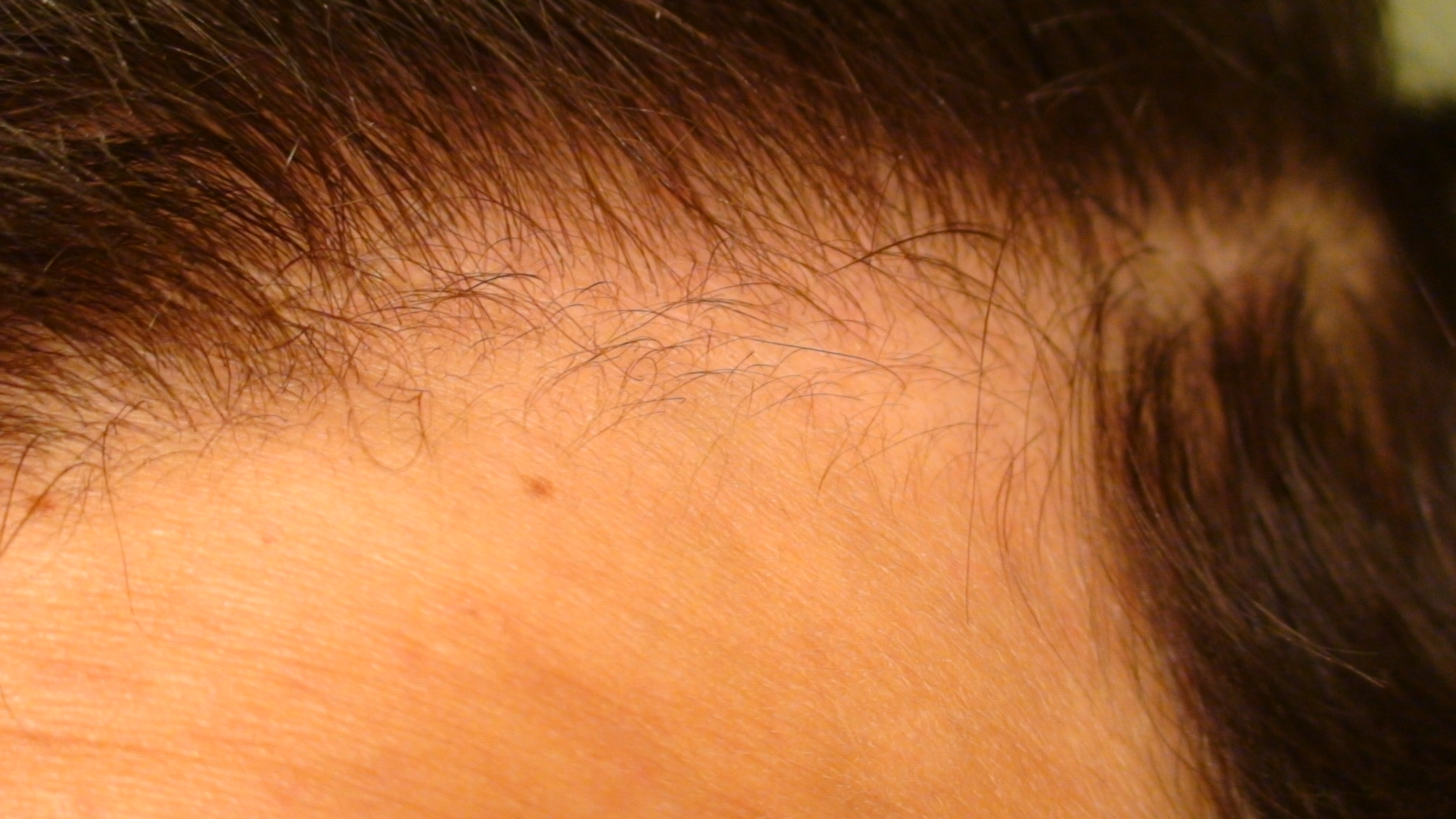 I haven't seem remarkable results so far, but i haven't been expecting any either, not for a while at least since I'm addressing the temples, the hardest area to regrow. I had a couple setback with the electrode breaking and not having the machine for a couple weeks, a couple band trips, and other college disturbances, so i haven't been as religious as i would like to be. That's gonna be changing though. At any rate, here is a pic of my temple taken today. You can compare to pics in the hairloss blog. Really, it doesn't seem like it has gotten worse, and at my age that is a really good sign, especially at this step.